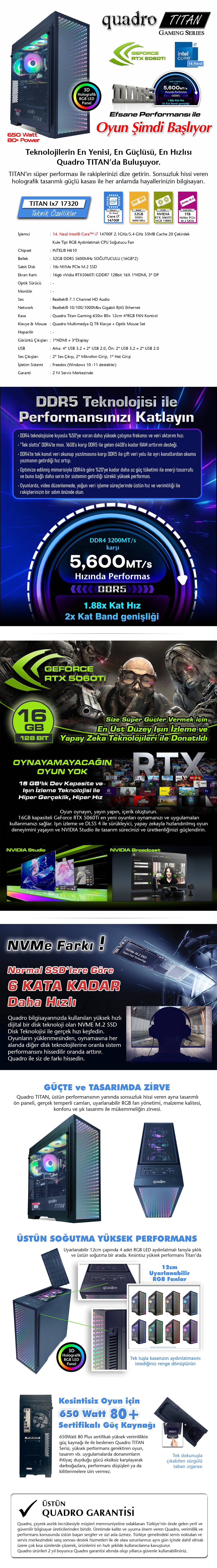 Quadro Titan IX7 17320 i7 14700F 32gb DDR5 1tb nvme 16gb RTX5060ti Freedos